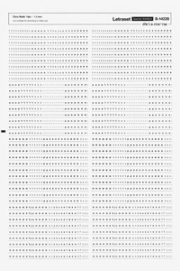 Letraset מדבקות גירוד שהופכת להדפס על נייר . יש לצמיד את דף הפרגמנט עליו מודבקות אותיות ומספרים ולגרד בעדינות את האותיות ע"י קצה אצבע או כל חפץ אחר עם קצה קשיח ולאחר מכן האות או המספר יועבר לדף ויראה טבעי כמו הדפסה במקום הרצוי . דף 1 בגודל 25/38 ס"מ גוון : שחור גודל האותיות 1.5 מ"מ דגם : S-14220