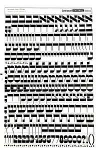 Letraset מדבקות גירוד שהופכת להדפס על נייר . יש לצמיד את דף הפרגמנט עליו מודבקות אותיות ומספרים, יש לגרד בעדינות את דף הפרגמנט ע"י קצה אצבע או כל חפץ אחר עם קצה קשיח ולאחר מכן האות או המספר יועבר לדף ויראה טבעי כמו הדפסה במקום הרצוי . דף 1 בגודל 25/38 ס"מ גוון : שחור גודל האותיות 21 מ"מ דגם : HEB-533